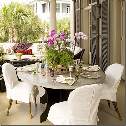 Em primeiro lugar, as flores colocadas na cesta,elas estão se destacando por si mesmas.As capas das cadeiras que protegem e criam um ar de conforto. O ambiente é muito agradável.