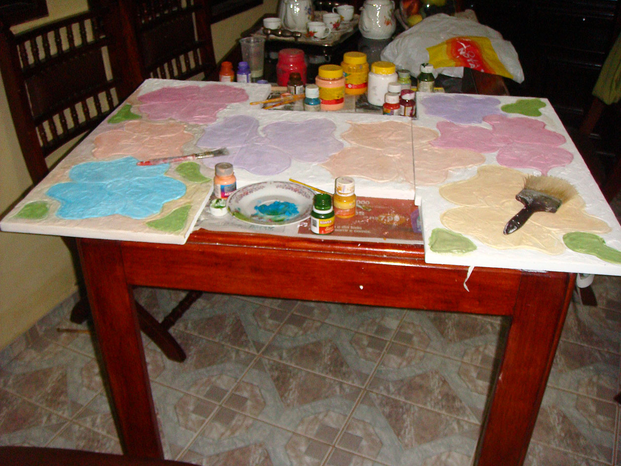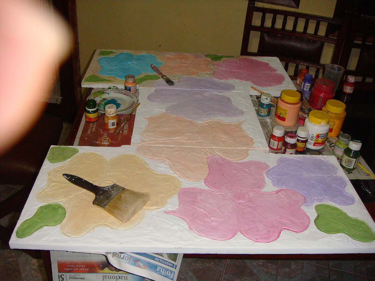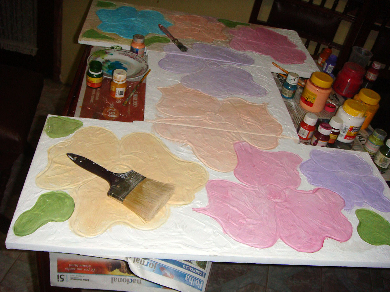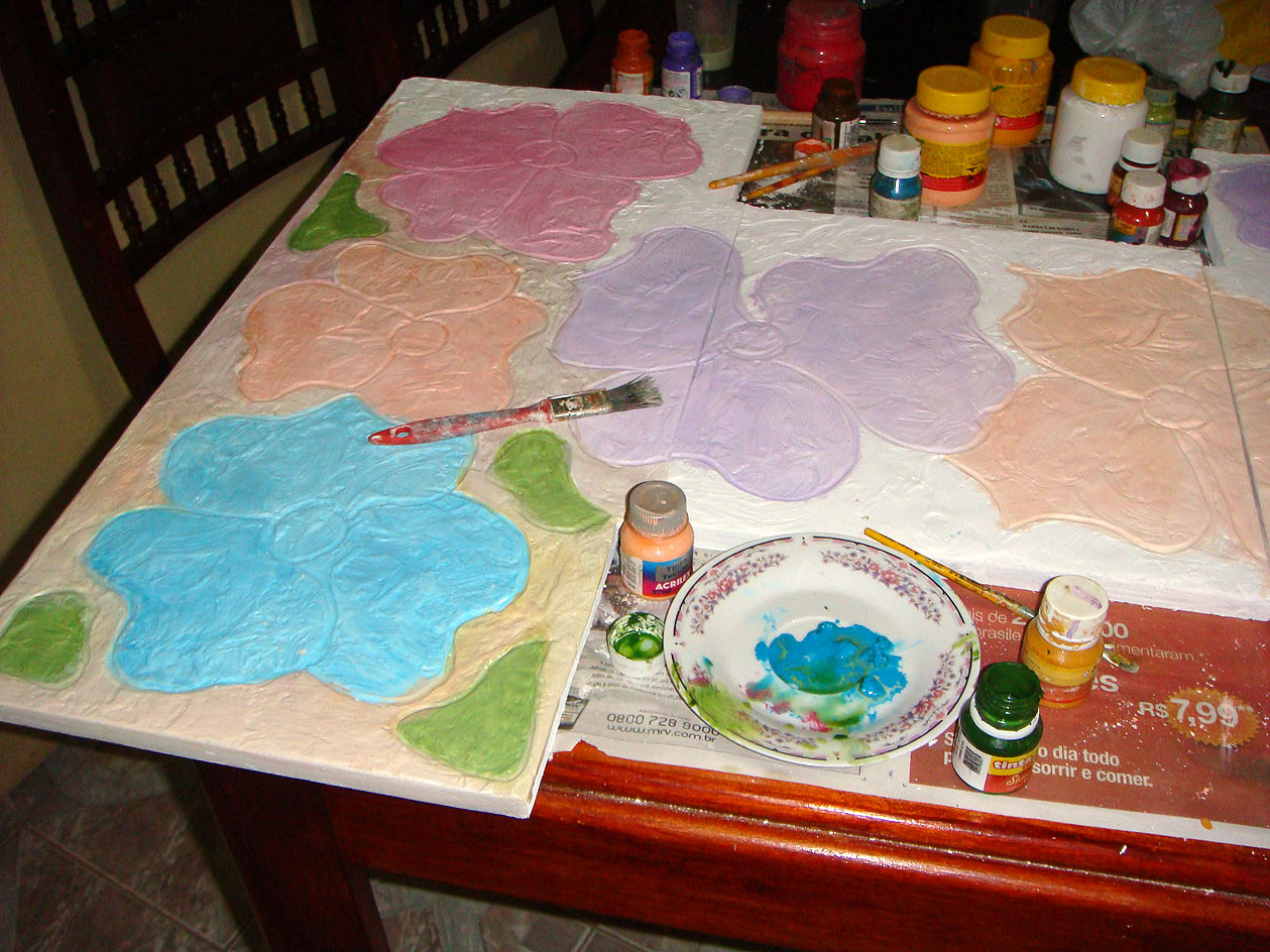 Voltei com mais retalhos de madeira. Vocês sabem, que eu não posso ver um retalho de madeira que logo pego para transforma-lo. Desta vez, sai catando alguns pedaços e fiz essa montagem . Apliquei massa corrida para fazer a textura e pintei com guache. Gosto de pintar com guache porque ele, da uma nuance aquarelada bem suave. A seguir mostrarei o resultado final.