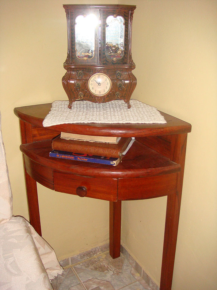 Esta cômoda é três em uma…ela é porta jóias , caixa de música,e relógio.